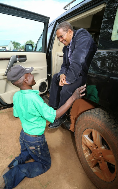 Wazee wa Mkoa wa Geita wakimvisha Rais Dkt. Jakaya Mrisho Kikwete vazi la kijadi wakati wa uzinduzi wa Mkoa Mpya wa Geita Jumamosi mchana. Picha na Freddy Maro